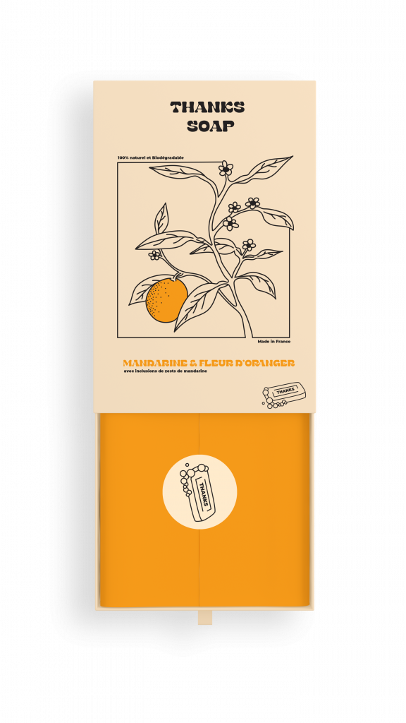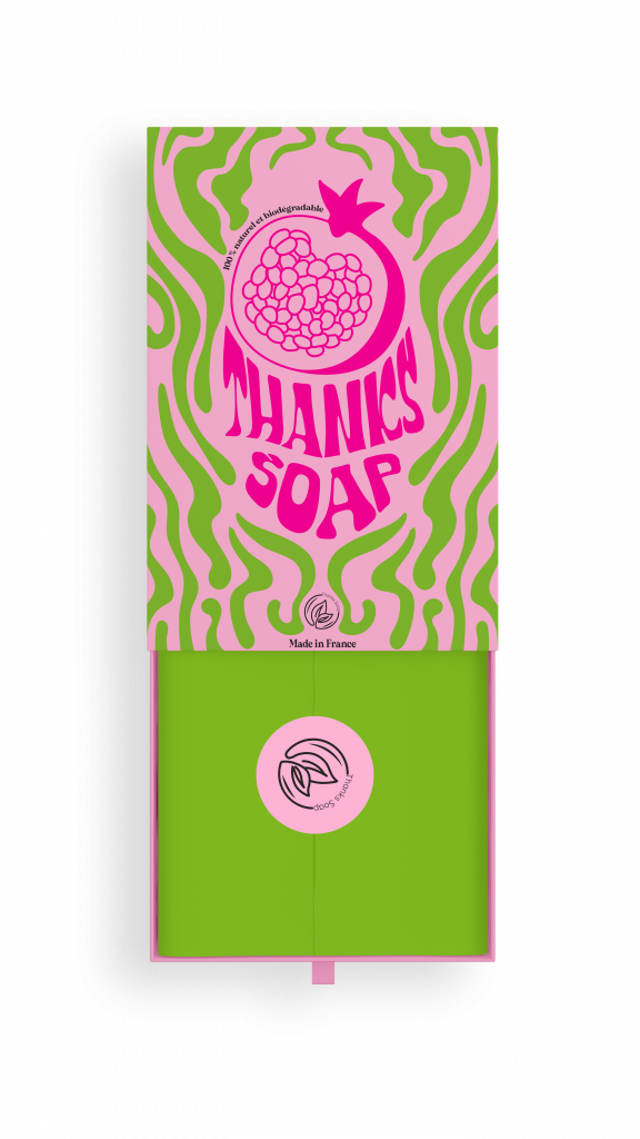 Objectif : Concevoir un packaging pour une marque fictive de savon appelée « Thanks Soap ». Cette marque, fabriquée en France, se distingue par son engagement envers l’environnement et la qualité de ses produits. Chaque savon est élaboré exclusivement à partir d’ingrédients 100% naturels, garantissant une utilisation respectueuse de la peau et de la planète. De plus, le savon est entièrement biodégradable, ce qui renforce la démarche écoresponsable de la marque. Le packaging devait donc refléter ces valeurs écologiques et locales, tout en mettant en avant la naturalité et la durabilité du produit.